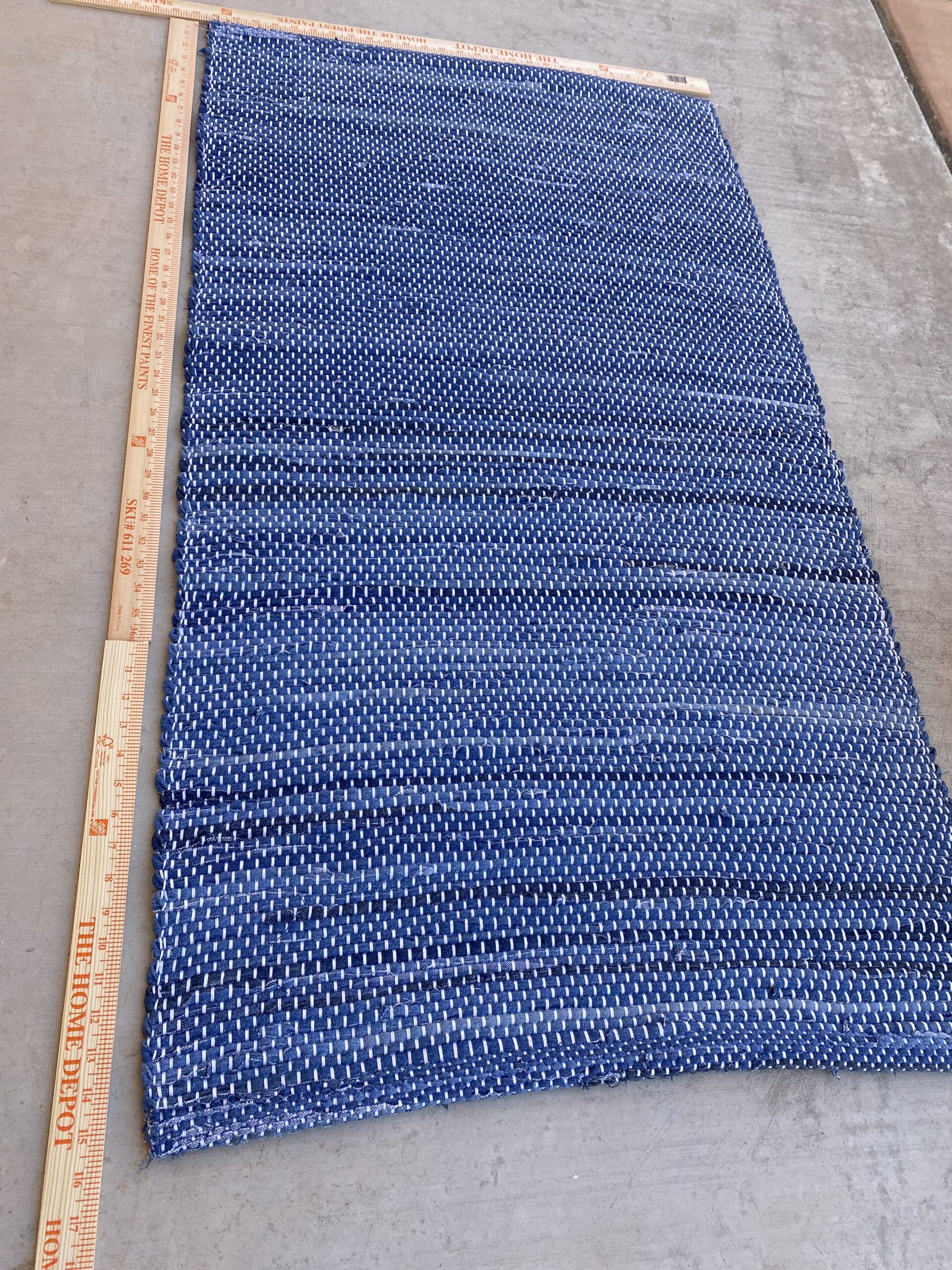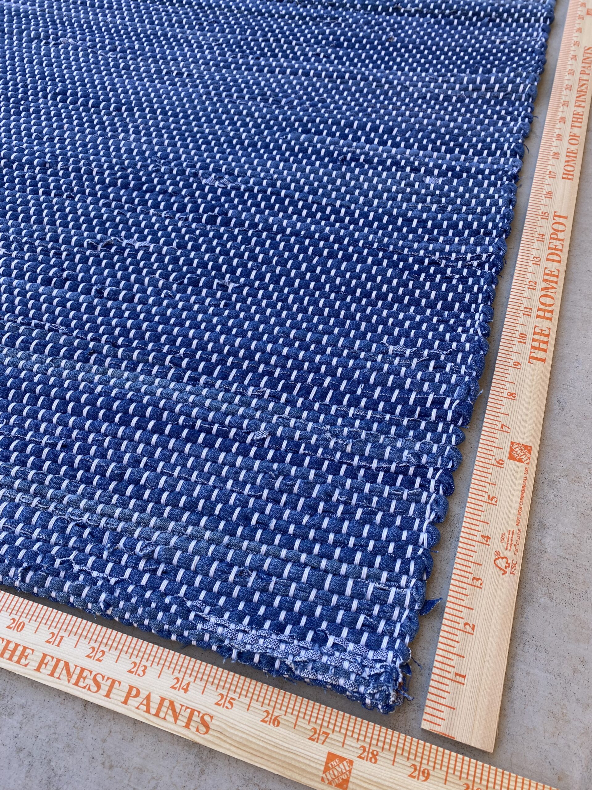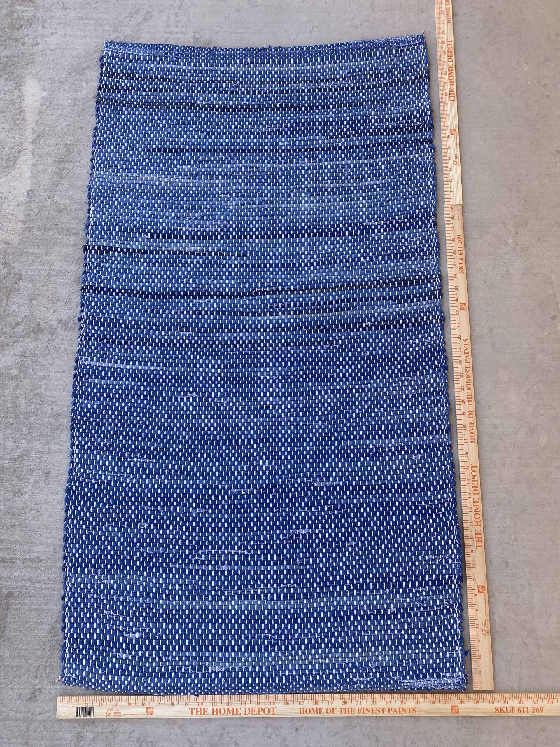 + shippingThis woven denim rug is made from several pairs of old blue jeans that have been carefully deconstructed and stripped by hand. It takes many hours of prepping materials in order to weave a rug with denim. All seams have een removed so there are no “lumps” in the rug from the seams. It is woven on a hundred year old Union Custom rug loom. The rug is hemmed; this extends the wear life of a rug. This handmade rug will last many many years!